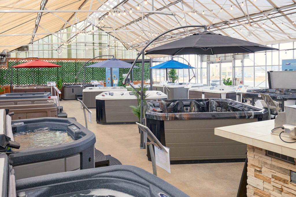 “It’s four times the size of our other locations,” A.J. Cada says. “It was an old florist, so there’s a brick-and-mortar store and a huge glass greenhouse where you can keep 25, 30, 35 spas. It’s really inviting — customers like it. You get all the natural lighting through that greenhouse.”