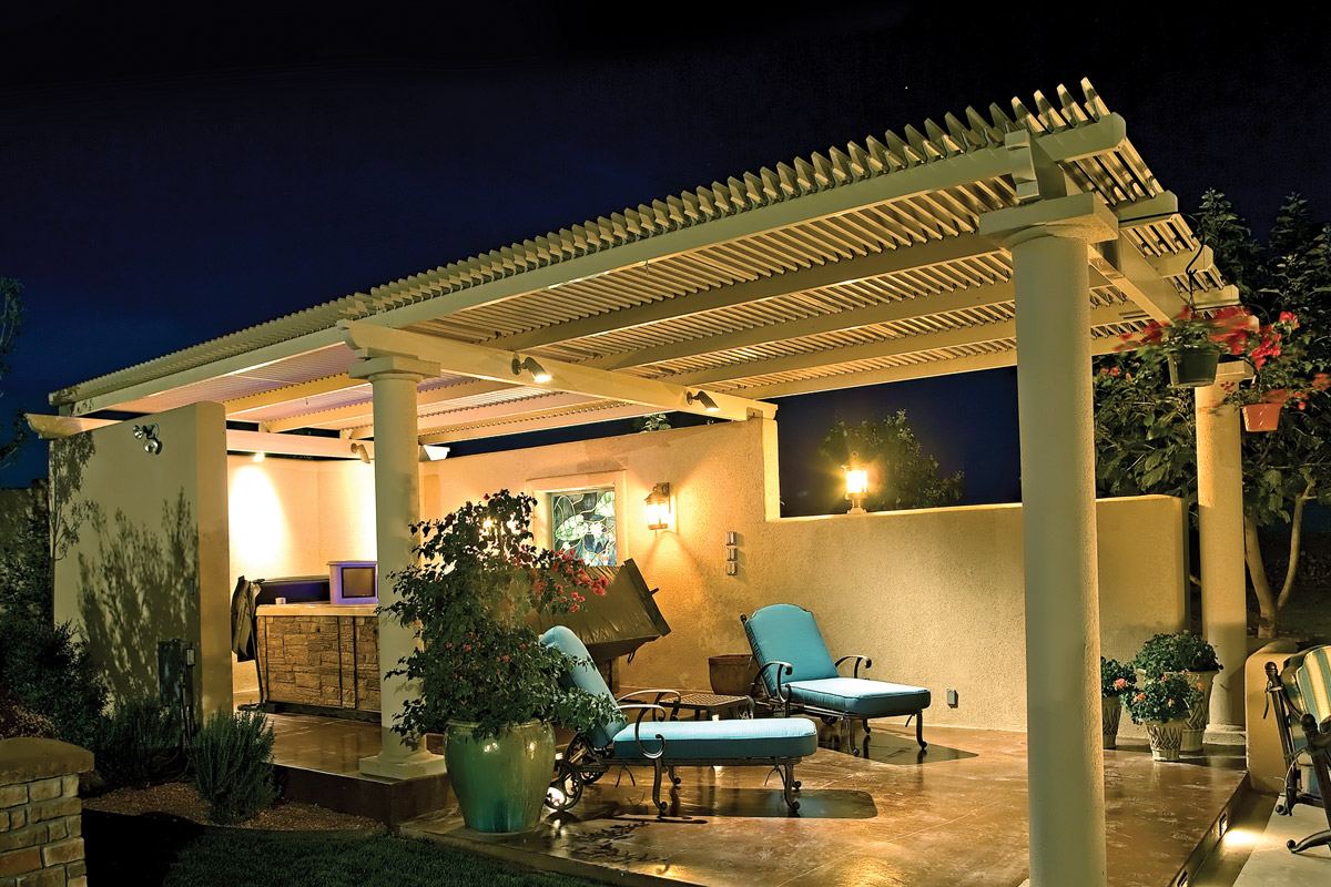 “We recently built three of them for an apartment building in Hobbs, New Mexico,” Skains says. “Both brands offer the ability for the louvers to be open or closed or anywhere in between. We have also used them vertically as a privacy wall.”