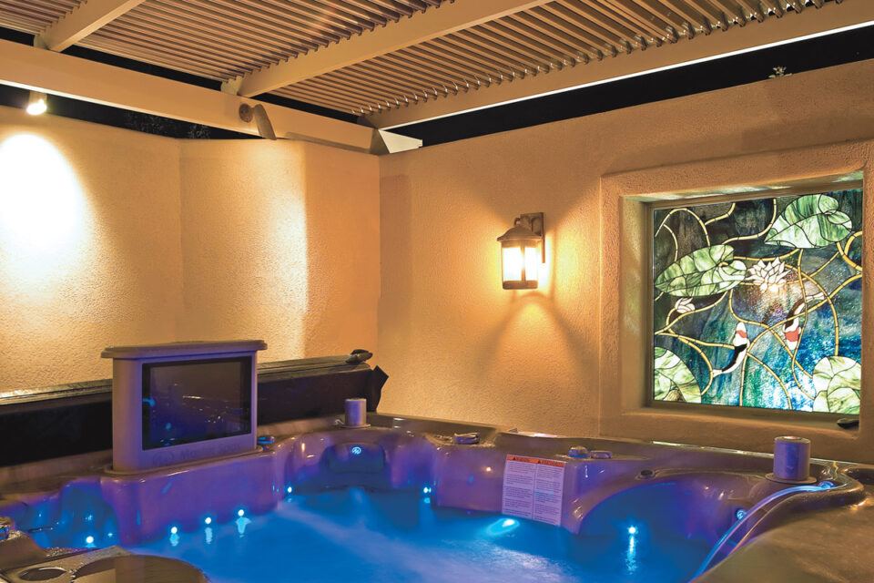 In addition, All About Spas and Leisure Living offers screens that allow varying degrees of sun and wind to come through. Skains says many of their customers live on golf courses, so the screens are used for privacy as well as to keep golf balls off their outdoor space.