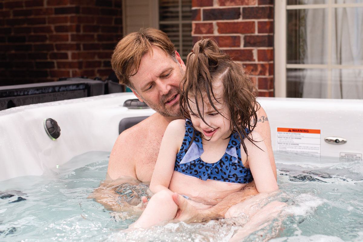 The swim spa has become a place where the family can relax, whether it’s Ryan getting in for a few moments of peace after a long day, or Lucy’s adopted sister, Bowen, hopping in to “help” with her therapy.