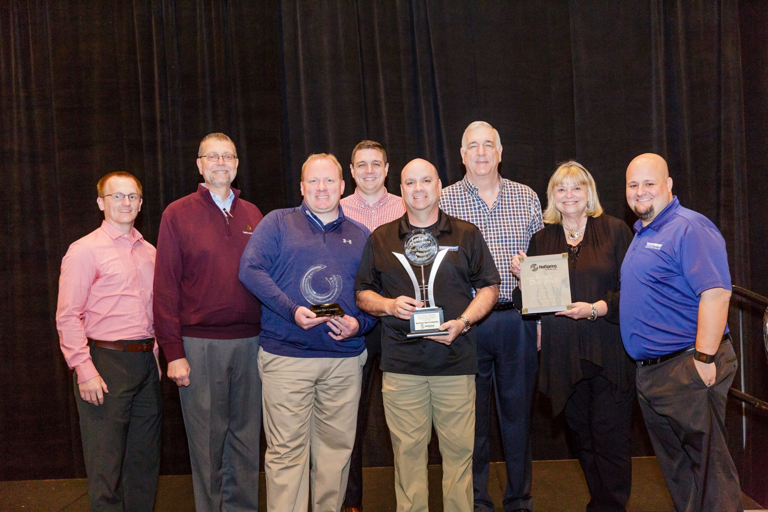 Georgia Spa Company has been a Watkins dealer for six years. Owner Mark Stevens and several form his team accepted the award at the company’s dealer meeting in Orlando, Florida.