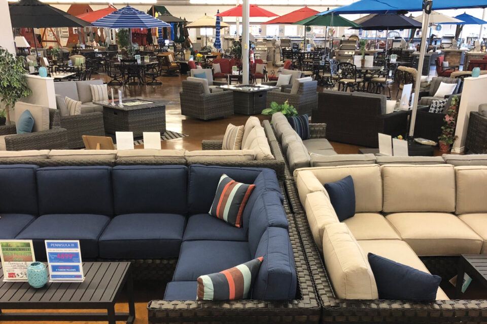 The showroom at Family Leisure in San Antonio, Texas, is still full of backyard living products.