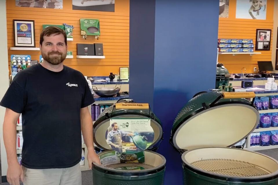 David Townley next to his Big Green Egg display. See the latest cooking video: bit.ly/TownleyLive