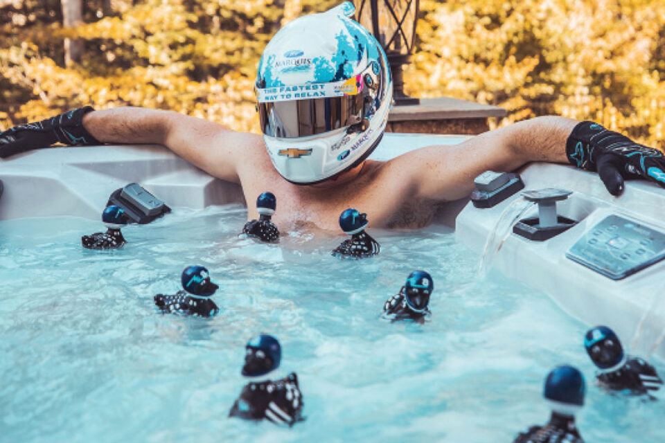 Truex says he’s always been a big fan of hot tubs, but his Marquis spa is the first he’s owned. He wanted to partner with a hot tub company because he says the relationship goes hand in racing glove.