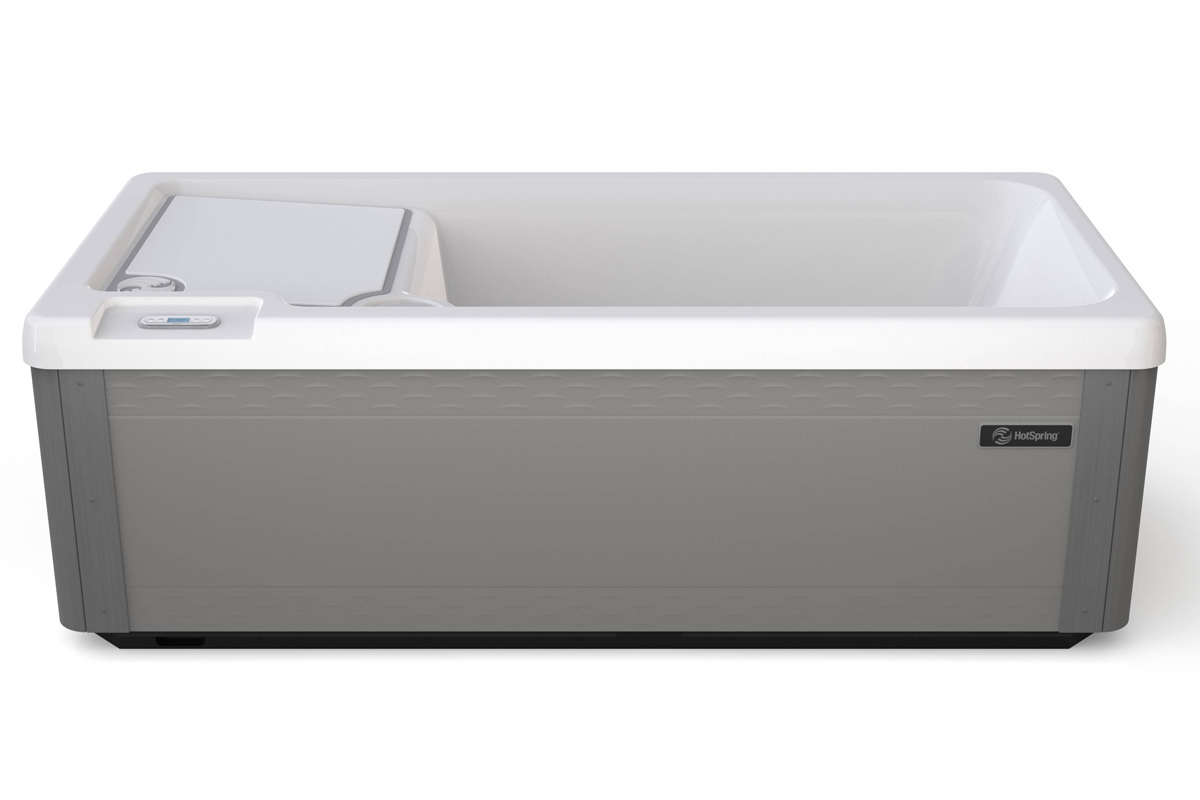 The design reflects that expertise. The cold plunges use the same multidensity foam insulation as Hot Spring’s High Life collection for the lowest energy cost possible, while fully insulated plumbing reduces heat transfer. A WeatherPro cover with a hinge seal helps keep water cold and protected, and a UVC sanitization system maintains clean water with minimal chemicals. The tub is roomy enough for one adult — roughly 7 feet long by 3.5 feet wide — with a sloped nonskid deck for safety, comfortable seating design and large water capacity to prevent overflow when getting in or out.