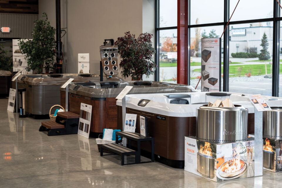 “We plumbed it all so that we can actually hot fill a tub,” Bassemier says. This allows them to quickly and easily offer wet tests on any hot tub on the floor. “We very much push ‘Try before you buy.’ ”