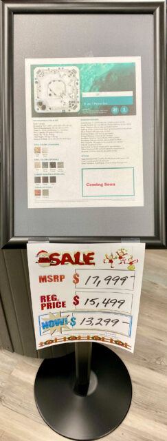 From there, I drove to a spa retailer that opened a few months ago. They use pre-printed sale signs with space to write the prices with markers. The MSRP is printed on the signs, the regular price and then the store’s seemingly discounted price. The paper signs were printed on 8.5- by 11-inch paper but put into sign holders designed for 11- by 14-inch paper. The signs were floating haphazardly inside the holders.