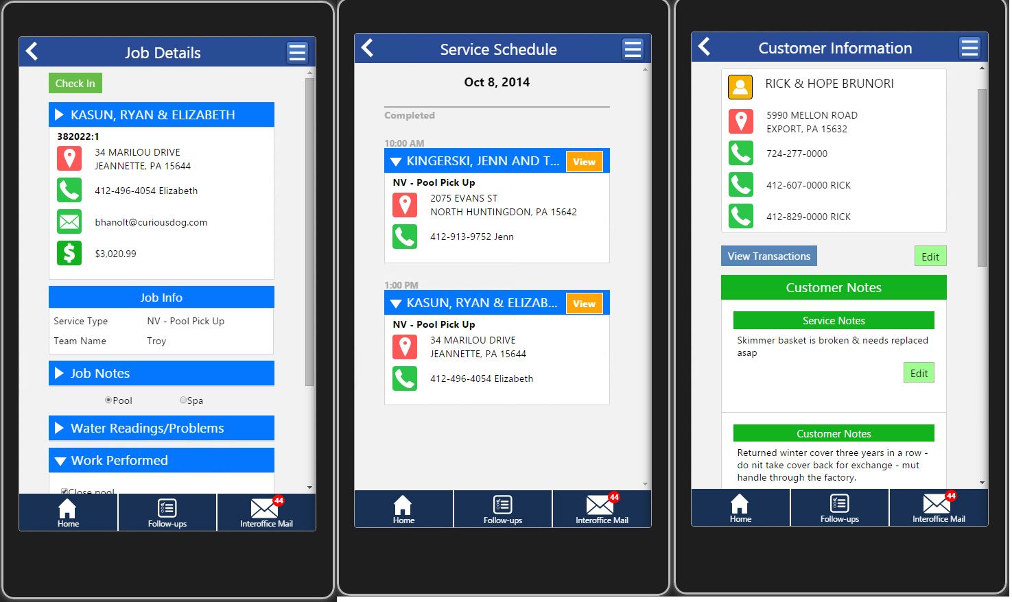 Service technicians can now go mobile with RB Pool and Spa Software’s Mobile Live Service program. Easily view scheduled jobs along with the customer’s information including equipment profile, job notes, directions and pictures on record. With RB Mobile Live service pros have immediate access to all updates done at the office and the office is instantly updated with your work. Record pool or spa water test results, take payments at the job site, look up inventory and do physical inventory on your truck, all on your phone or tablet. The program even tracks hours with a time clock feature.