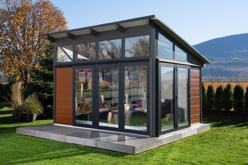 Features: Product comes pre-built in a crate, with some final assembly required. Three main products available: Open Air (pergolas and sunshade), Semi-Enclosed (post and beam with roof) and Fully Enclosed (wall panels, windows and doors)