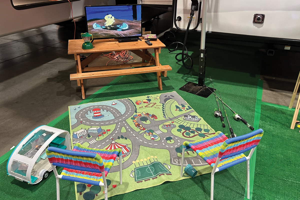 One RV dealer at a recent expo I attended incorporated several creative and immersive areas into its setup. Outside of each unit, there were fake pine trees, wood signs and fake forest creatures made of wood and straw. At the end of each aisle hung large photos of nature that drew people down the walkways. There were “experiential zones” where customers could roast fake hotdogs over a fire and take selfies. In another focal area, picnic tables were set up with games for kids to play while their parents toured the RVs.