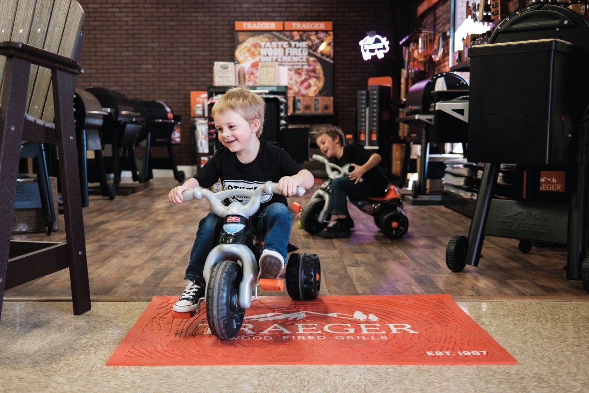 One such blessing, Melissa says, is the clientele, who understand Stiver’s is a small, family-owned business and give the couple a lot of grace — especially when their now 3-year-old is riding around the showroom on his tricycle chasing their new puppy every day the doors are open. A large back room in the store has a trampoline, play equipment and even a bed for napping.
