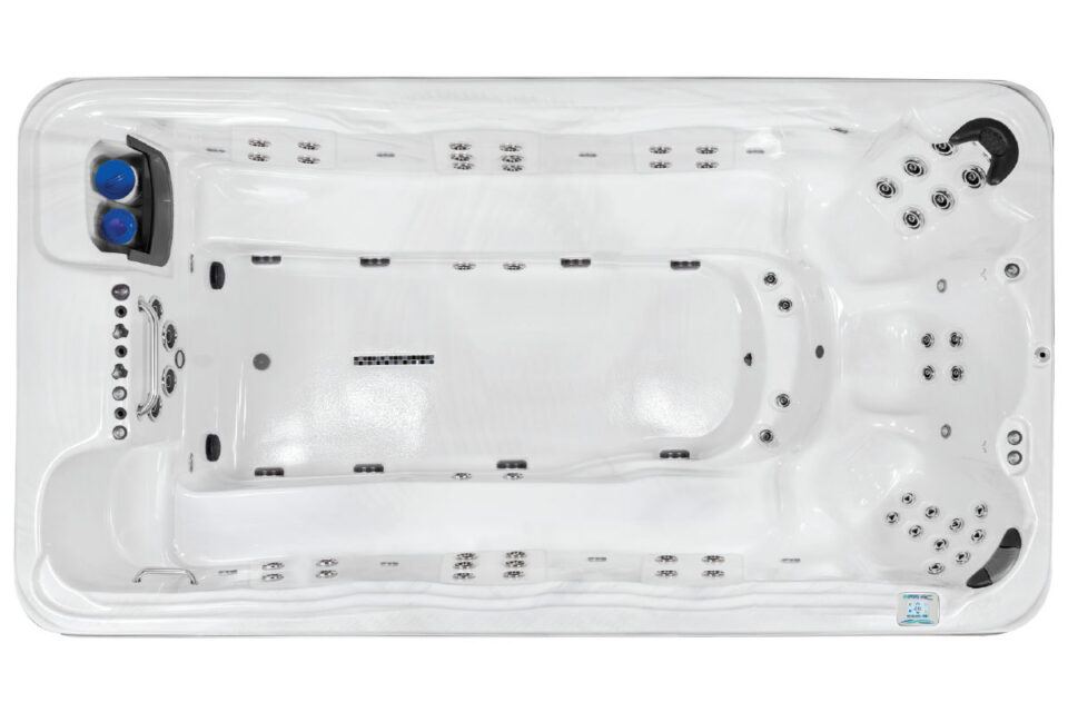 The Tidalfit spa station has 28 triple therapy jets with neck and shoulder jet massage. When customers choose the twin bench option, 28 additional jets are added —14 on each side. The swim lane has two jet systems that can be optioned in: the Quad jet swim system or the Swift water trainer system. Swift comes with a touch-screen control that allows users to pre-program a swim workout before entering the swim spa.