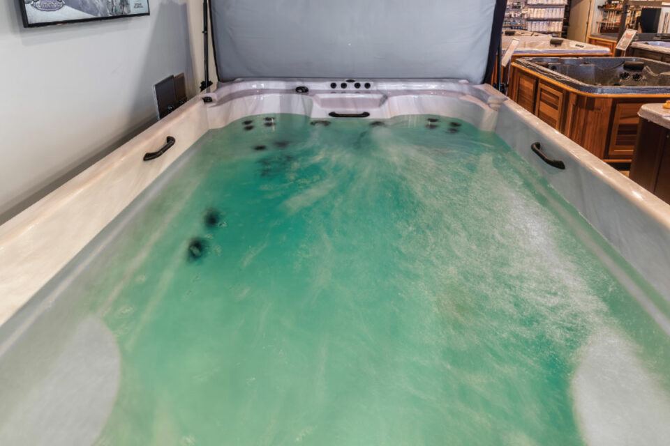 To be competitive as a swim spa dealer, it’s crucial to have at least one filled swim spa on the showroom floor. Adam Hazenfield, the vice president and store manager of Watson’s in Dayton, Ohio, says, “If it’s not filled up with water where the customer can see it, feel it, touch it, then it’s a losing battle.”