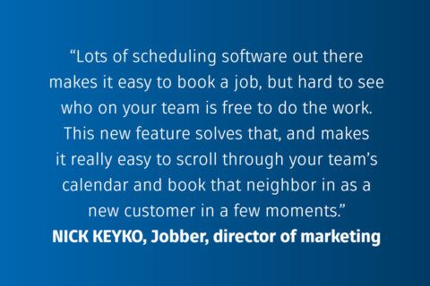 “Lots of scheduling software out there makes it easy to book a job, but hard to see who on your team is free to do the work,” Keyko says. “This new feature solves that, and makes it really easy to scroll through your team’s calendars and book that neighbor in as a new customer in a few moments.”