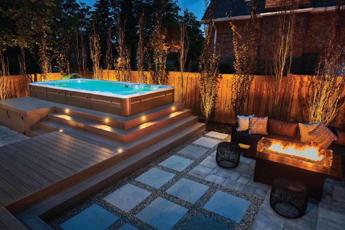 Beene says a majority of his customers like to have raised decks surrounding the new swim spa. “Basically [you] come out of your house onto a deck and then have a small walkway, making it more of a centerpiece, which is easy to do when it’s just 2 feet off the ground,” he says.