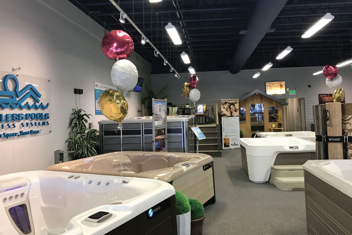 You may only have room to fill one enormous unit in your store — make sure that model has as many bells and features as possible so your customers can try out everything. A 17-foot Endless Pool is filled and displayed at Oregon Hot Tub’s Clackamas location, along with the swim treadmill, says the store’s sales manager, Shawna Mesher. The store in Beaverton, Oregon, displays a 12-foot model, since the footprint of that store is much smaller. The 20-foot EP unit fits comfortably at the company’s large warehouse store. Each of Oregon Hot Tub’s five Portland-area stores carries a different model of swim spa so customers can try different sizes if they are open to driving.