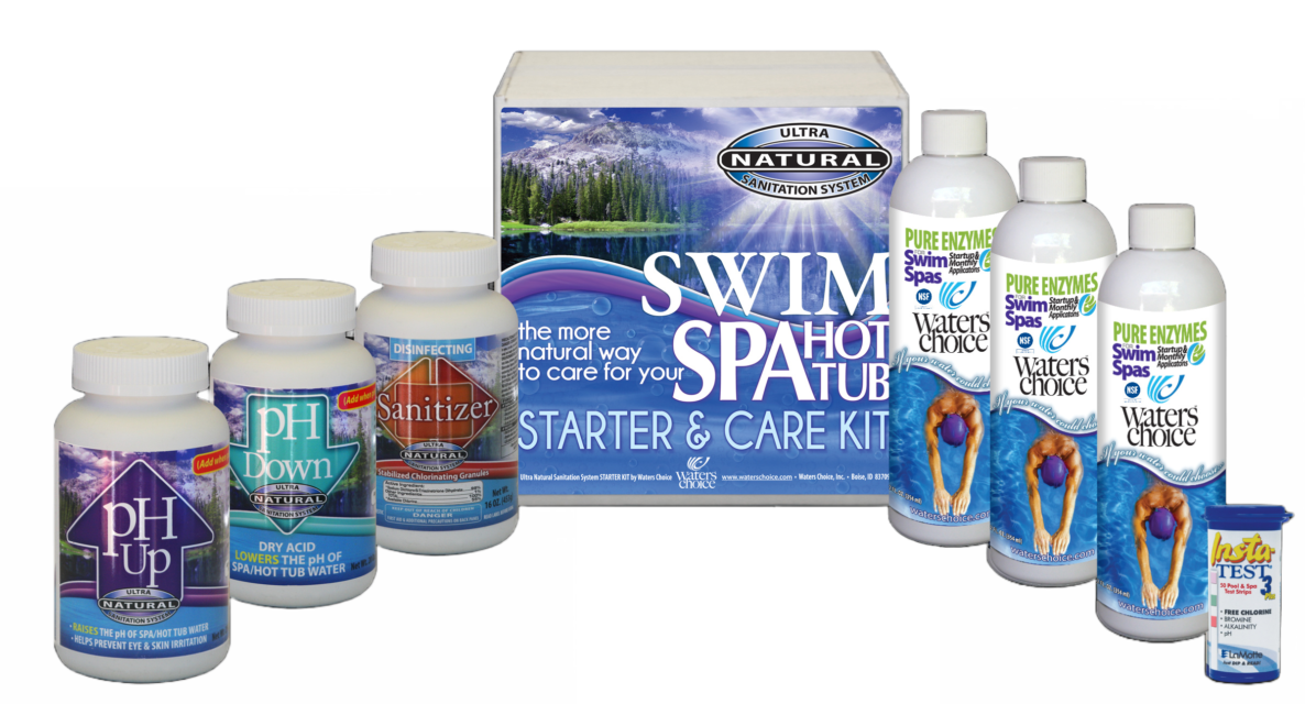 Specially formulated for swim spas, Waters Choice offers an all-in-one, natural, three-month swim spa start-up kit. It reduces the need for chlorine, saving time and money. The once-a-month NSF-certified kit simplifies your water care routine and is odorless, gentle and eco-friendly.
