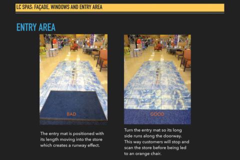 Assign this job to one or two people who have a clear understanding of your merchandising, visual merchandising, fixtures, signage, store design direction and overall brand and image. If you choose two people, consider one in marketing and one in operations. Alternatively, hire a third party with CVSM and spa store experience.