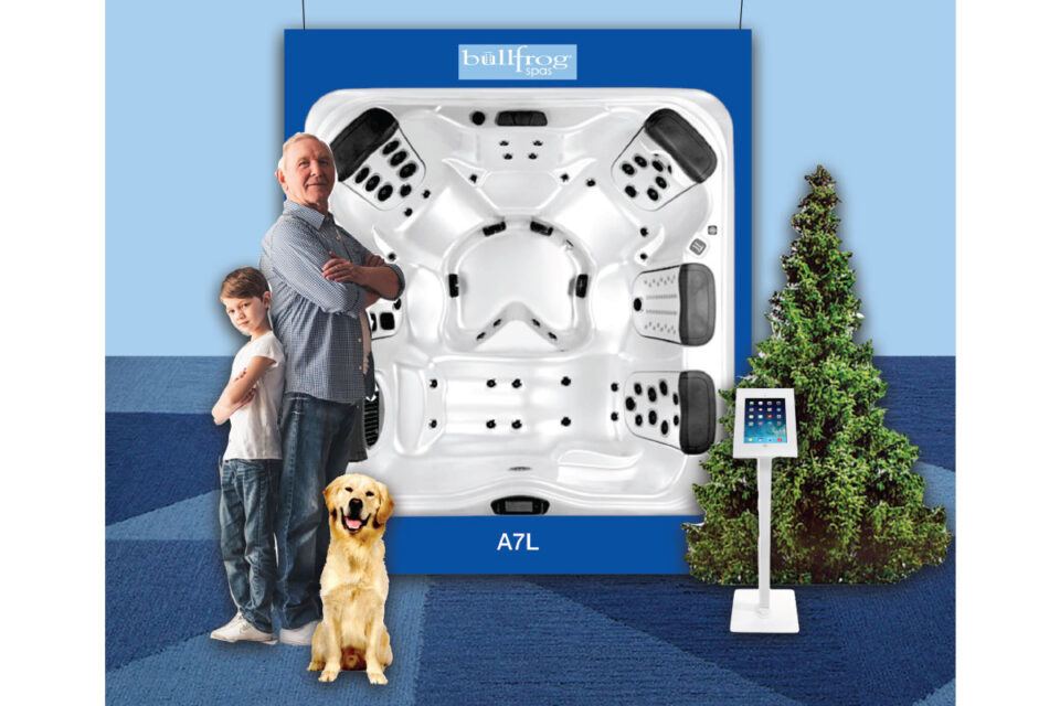 “The code links to a 3D version of that spa model that the customer can see through their phone, life-size in the showroom environment,” says Jake Ricks, director of marketing for Bullfrog. “They can even walk around it, look inside, take pictures of the spa with their phone — and of course they can take that technology home and see if that spa model looks good in their backyard space.”